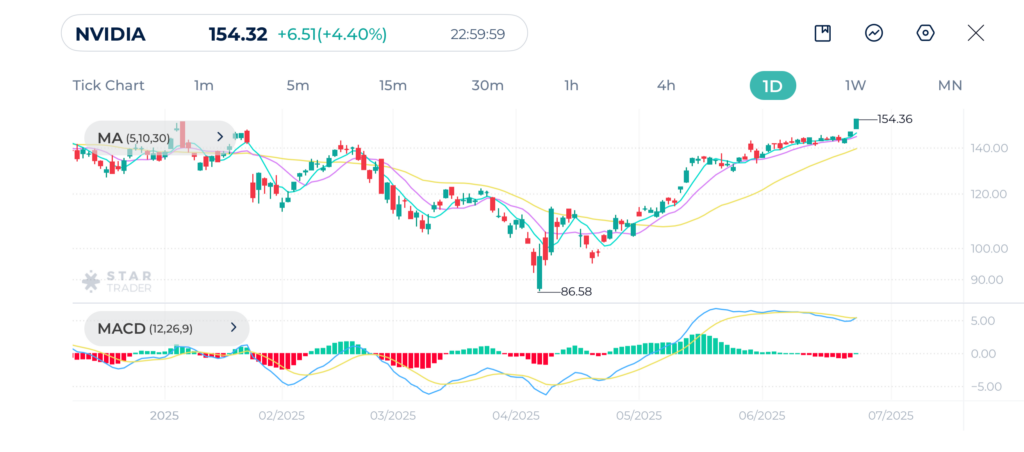- 英伟达再创历史新高,股价触及 $154.31美元,引领科技股强势反攻
