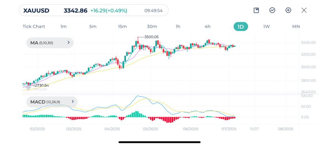 推动本轮上涨的关键因素之一是美国6月非农就业数据表现强劲:新增就业人数14.7万,失业率维持在4.1%。同时,温和的薪资增长缓解了市场对通胀的担忧,进一步强化了美联储或将在9月降息的预期。