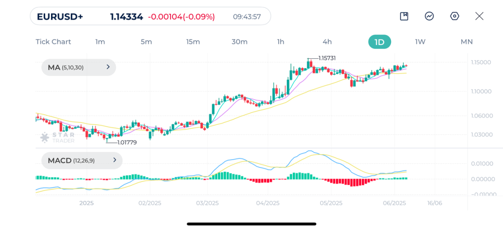 若日线收盘突破1.1573,预计将进一步上涨,目标指向1.1620至1.1700区域。反之,若价格受阻回落且MACD形成死叉,则可能迎来调整,回调目标位于1.1320至1.1280区间。