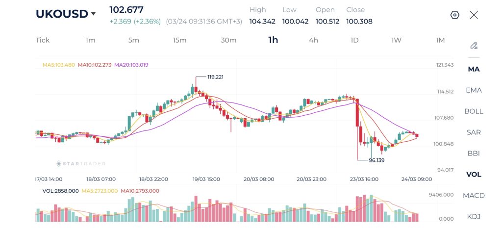 Biểu đồ Brent khung 1H
