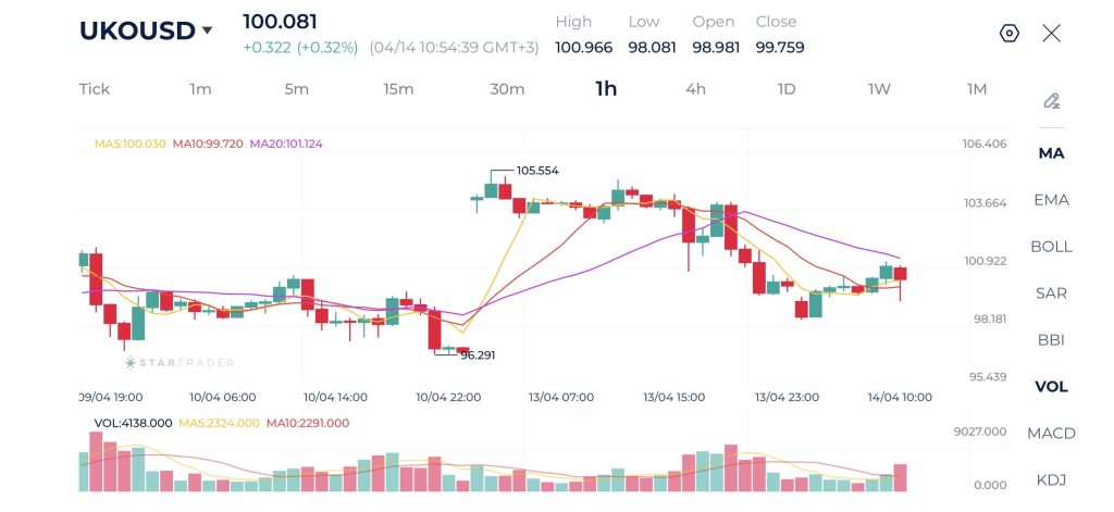 Biểu đồ Brent khung 1H